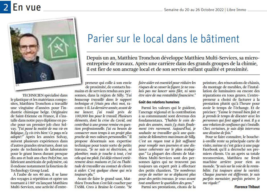 Le bouche-à-oreille est aujourd’hui la principale source de nouveaux clients, preuve de la satisfaction et de la fidélité de ceux qui font appel à Matthieu Multi-Services.